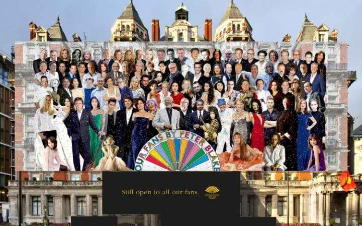 از این اثر برای پوشاندن نمای شعبه‌ی لندن هتل در طول دوره‌ی نوسازی گسترده‌ی آن استفاده شده است. این کلاژ عظیم با عنوان «هواداران ما» برای فراهم کردن یک سرگرمی چشم‌نواز در منطقه‌ی نایتسبریج آفریده شده است.