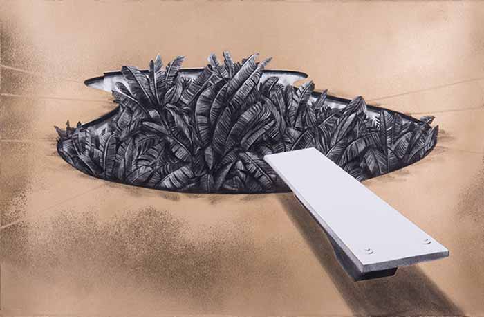 آکادمی هنر - پیشزمینهی بسیاری از تصاویر این مجموعه با اشکال سایهنمای قیرگون از درختان، دهانهی غارها، خطوط انتقال برق، مخازن آب، و سایر اشکال طبیعی و دست ساخت بشر اشغال شدهاند. در بعضی عکسهای خاص، نظیر «افق۸»، زمینهای کوهستانی همچنان که بهسمت افق دور حرکت میکنند بهتدریج و بهصورت مجزا روشنتر میشوند.