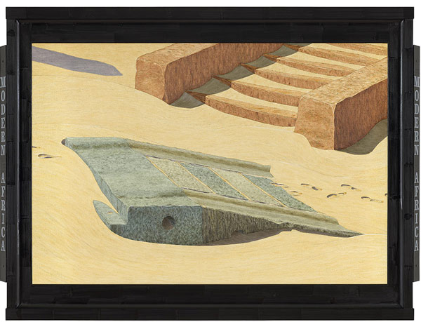 یک حصار کودکان را از جاده سیاهی جدا می‌کند، و بیشتر فضای بوم هم با رنگ اکریلیک سبز رقیق، با ضربات قلم نامرتب و شلخته، پوشانده شده است. نقاشی دوم، «اوزاریکا»(۲۰۱۴) یکی از «نقاشی‌های خوب جدید»، شاخه‌ای بلند، صخره‌ها و سطح درخشان آب را نشان می‌دهد. در این اثر رنگ‌ها با لطافت و ظرافت در هم آمیخته شده‌اند. این منظره افقی به قدری جاندار است که می‌توان در آن هوای خنک کوهستانی مناطق غرب میانه امریکا را احساس کرد؛ مناطقی که عنوان کار به آن اشاره دارد. آخرین و جدیدترین نقاشی، تحت عنوان «افریقای مدرن»(۲۰۱۶) آب و هوای خشک شمال افریقا را مجسم می‌کند؛ با یک پلکان و یک قطعه سکوی شیب‌دار مدفون در شن، به همراه رد پاها و یک سایه بلند، که نشانگر حضور انسان هستند. همه نقاشی‌ها در قاب‌های سیاه چوبی سنگین به نمایش در آمده‌اند که توسط خود هنرمند طراحی و ساخته شده‌اند.